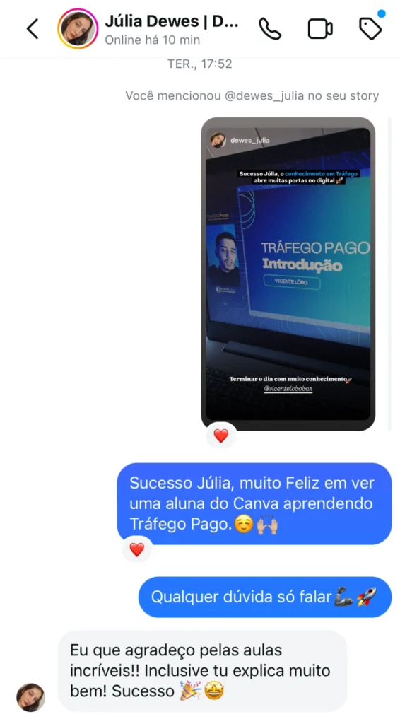 Incetivado pela minha esposa, Não demorou muito, pouco meses depois já estava subindo minhas primeiras campanha de tráfego para o infoproduto(Canva Evolution) dela, ao qual hoje já soma mais de 1/2 milhão em vendas.